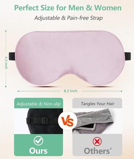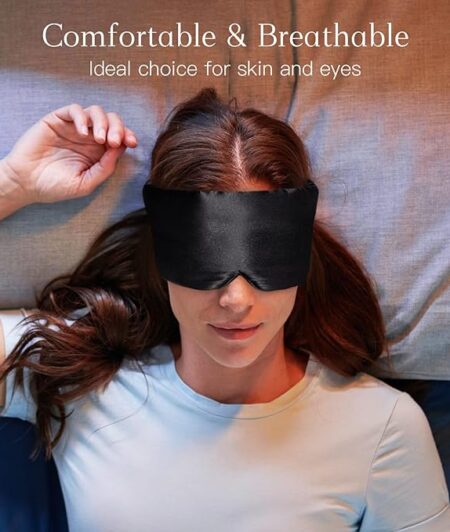 100% Natural Silk Eye Mask for Women Men, Soft Pressureless Cooling Blackout Eye Covers for Sleeping, Large Size Sleep Mask fits All Heads Adjustable, 1PC, Black