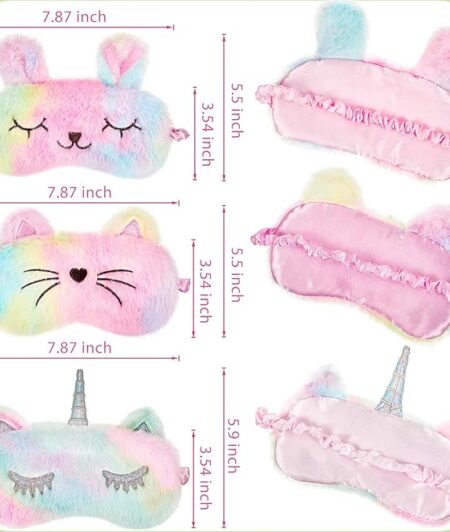3 Pieces Sleep Mask for Kids, Girls Plush Sleeping Eye Cover Soft Eye Blindfold Cover Animal Shade for Kids(Rainbow Color,Bunny, Cat and Unicorn Style)