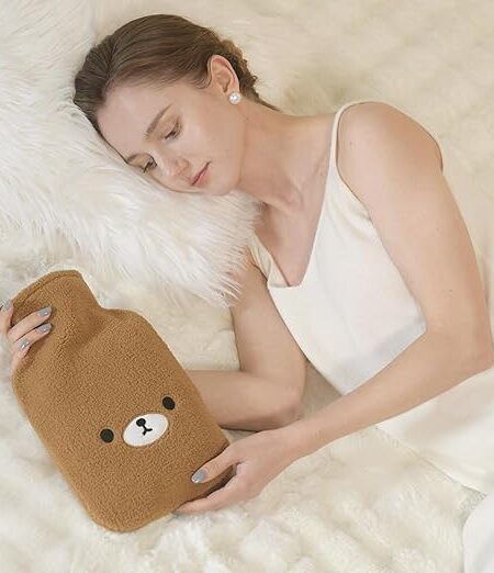 Hot Water Bottle with Cute Fleece Cover, 2L Hot Water Bag for Hot and Cold Compress, Hand Feet Warmer, Neck and Shoulder Pain Relief,Bear Blue