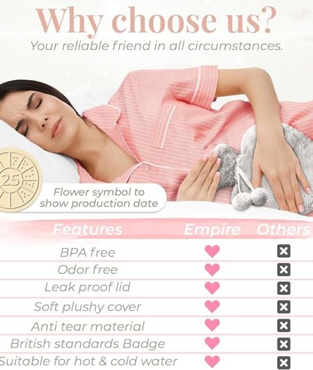 Hot Water Bottle with Cover UK – for Pain Relief (2L) 2 Sided Hot Water Bottle for Adults with Pocket for Endometriosis Period Pain Relief Stomach Cramps