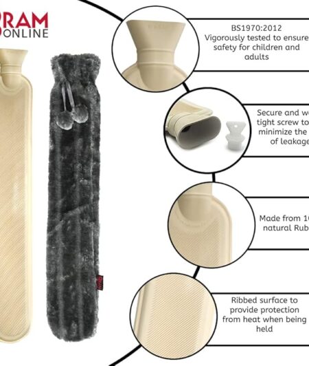 Extra Long Grey Hot Water Bottle for Back Ache Pain Relief Hot Water Bottle 72CM