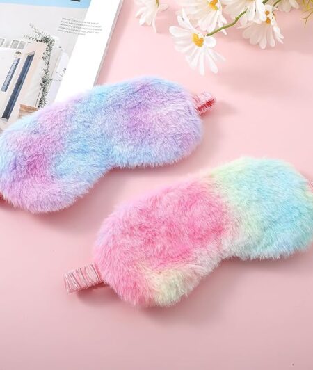 2 Pack Plush Sleeping Eye Mask Soft Plush Eye Mask Fuffy Eye Cover Comfortable Sleep Mask Blindfold Rainbow Faux Fur Eye Shade for Women, Men and Kids Travel Nap Sleeping