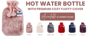 Be the first to review “Luxury Hot Water Bottle with Soft Faux Fur Cover & Pom Poms – 2 Litre Large Leakproof Rubber Bottle for Neck, Shoulder, Back Pain Relief & Hand and Feet Warmer (Plum)”
