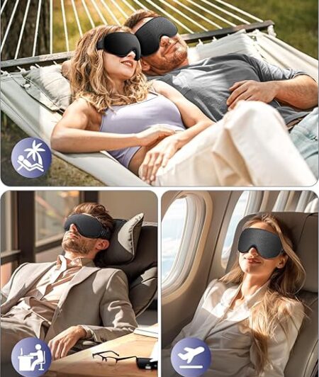 Sleep Mask for Men Women: Blackout Eye Masks for Sleep – 3D Breathable Soft Comfortable Eye Mask for Travel – Adjustable Light Blocking Night Masks for Sleeping