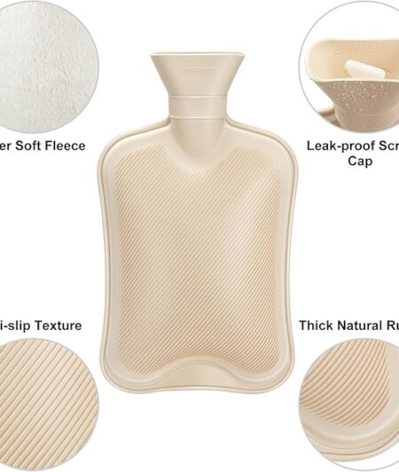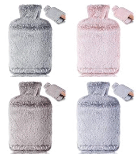 Hot Water Bottle with Fleece Cover, 2L Bag for Cold & Hot Therapy, Fluffy for Back Neck Pain Relief for Adult Kids