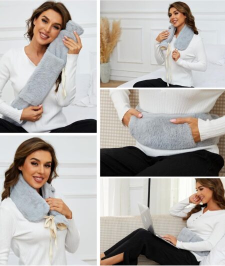 Lang mit Bezug, Groß Gummi Wärmeflasche Lange Warmflaschewarmflasche Warm mit Flauschig Hände Bezug, 72cm Extra Länglich Wärmeflaschen XXL 2 Liter Warmflasche für Die Periode, Grau