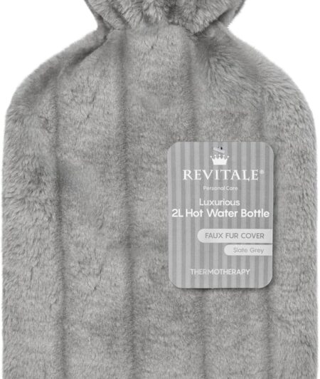 Luxury Cosy Hot Water Bottle 2 Litre, Soft Cover, Single Ribbed Natural Rubber 2025, British Standard BS1970:2012, Durable & Leak-Resistant (Slate Grey)