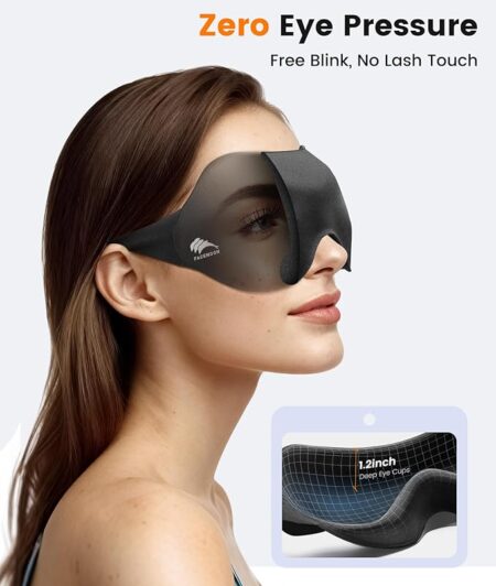 Pro Sleep Mask – 100% Light Blocking Sleep Mask for Side Sleepers, Breathable and Comfortable, Spacious & Zero Pressure for Long Lashes, Perfect for Sleep/Travel/Nap/Shift Work